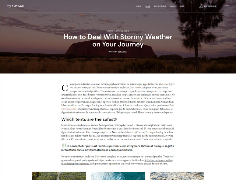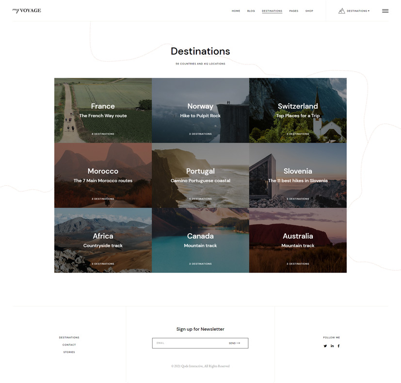 Set up your shop with ease. MyVoyage is WooCommerce compatible and with an outstanding shop page collection it has all you’ll need to display your merchandise.